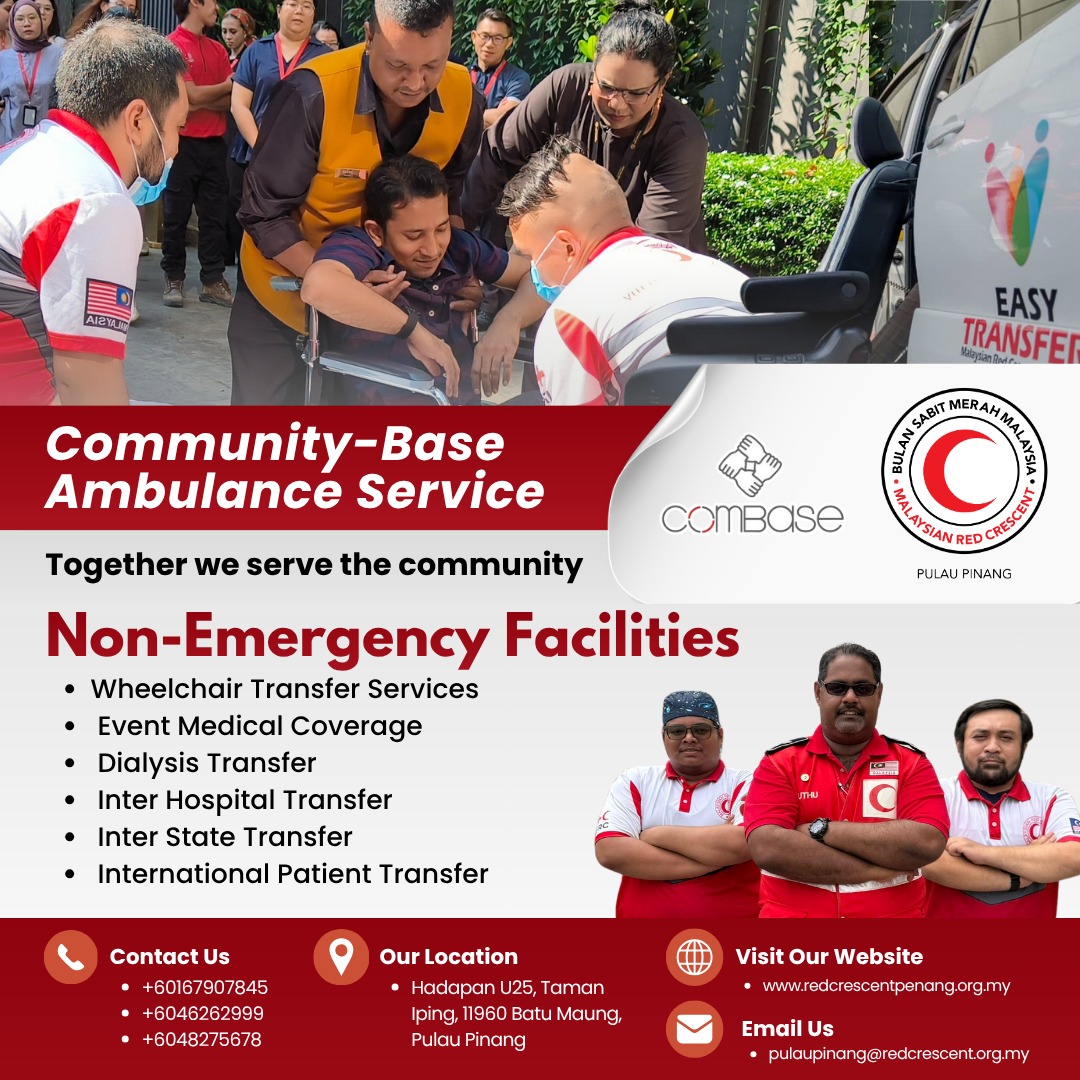 At Malaysian Red Crescent Penang Chapter, our Community-Based Ambulance Service is dedicated to providing safe and reliable non-emergency transfers. From wheelchair assistance to inter-hospital and international transfers, we ensure compassionate care and professional support for every journey. Together, we serve the community with dignity and commitment.